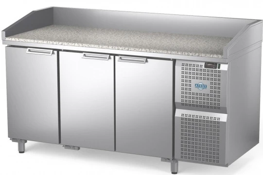 Стол с охлаждаемым объемом Atesy Диксон СТХ со столешницей из натурального камня имеет борты для возможности установки на них витрины для охлаждения компонентов для пиццы «Болонезе-8».