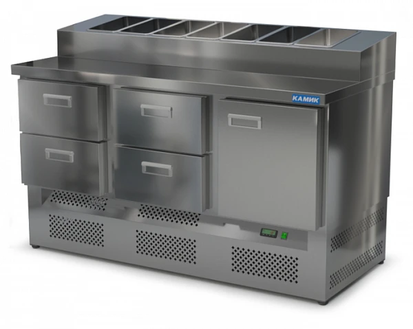 Стол для пиццы Камик СОП-141576Н используется на предприятиях общественного питания и торговли для хранения пиццы, салатов, сэндвичей и других блюд и ингредиентов к ним в охлажденном состоянии.
