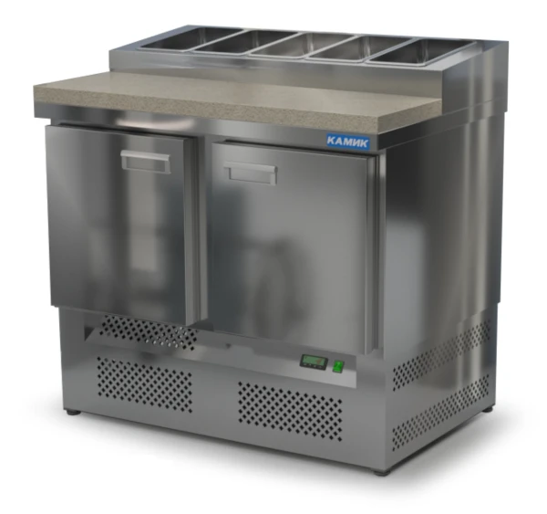 Стол для пиццы Камик СОП-201073КН используется на предприятиях общественного питания и торговли для хранения пиццы, салатов, сэндвичей и других блюд и ингредиентов к ним в охлажденном состоянии.