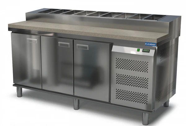 Стол для пиццы Камик СОП-3018576К используется на предприятиях общественного питания и торговли для хранения пиццы, салатов, сэндвичей и других блюд и ингредиентов к ним в охлажденном состоянии.