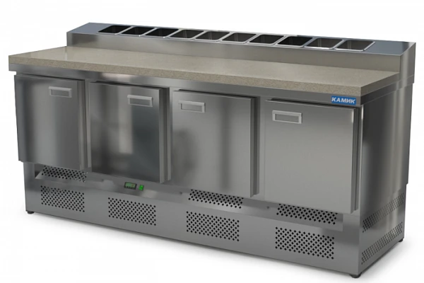 Стол для пиццы Камик СОП-402073КН используется на предприятиях общественного питания и торговли для хранения пиццы, салатов, сэндвичей и других блюд и ингредиентов к ним в охлажденном состоянии.
