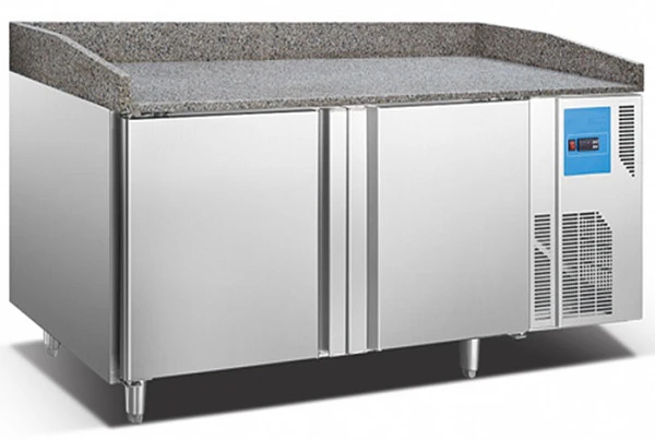 Стол холодильный пиццерийный объемом 390 л со столешницей из гранита глубиной 800 мм, с двумя дверьми.