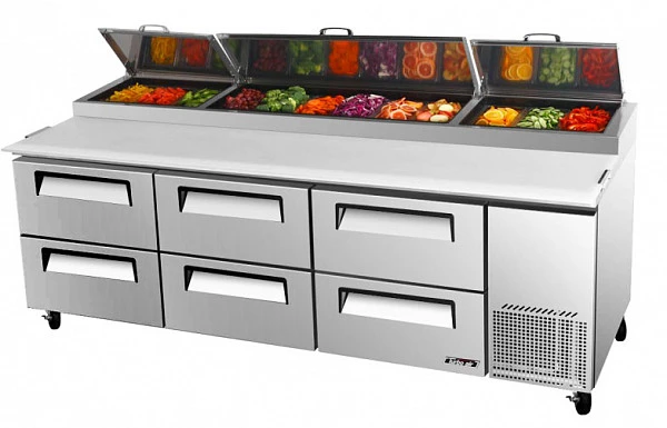 Turbo Air CTPR-93-2D-6 предназначен для обработки ингредиентов, используемых для приготовления пиццы, охлаждения и кратковременного хранения продуктов на предприятиях общественного питания и торговли.