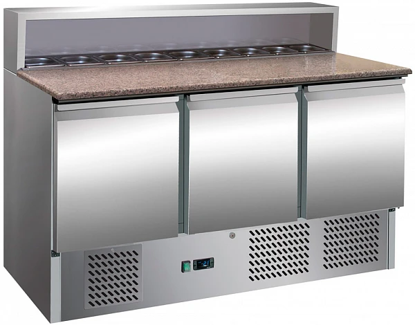 Стол для пиццы Viatto by Forcool PS903 SEC используется на предприятиях общественного питания и торговли для хранения пиццы, салатов, сэндвичей и других блюд и ингредиентов к ним в охлажденном состоянии.