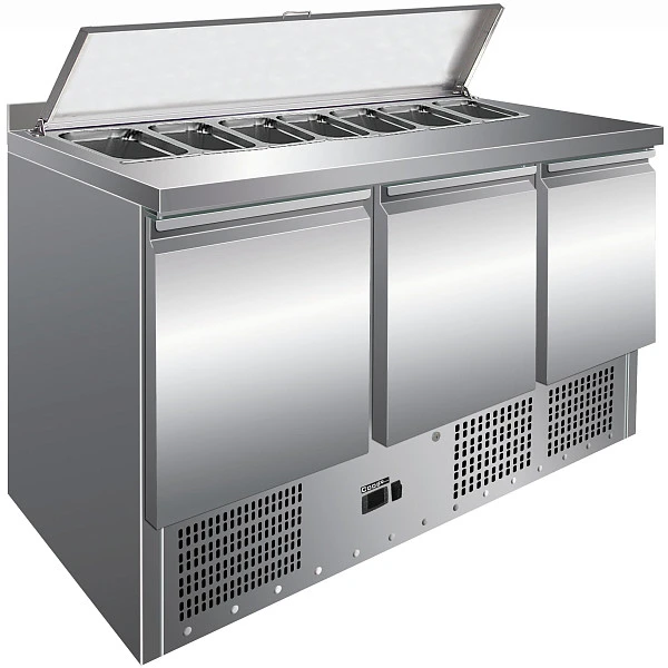 Стол для салатов Cooleq S903-7GN 1/3 предназначен для хранения, приготовления салатов и других блюд. Столешница из нержавеющей стали выполняет функцию рабочей поверхности повара. Отсек с семью гастроемкостями GN1/3 позволяет ингредиентам всегда быть под рукой. Выполнен из нержавеющей стали.