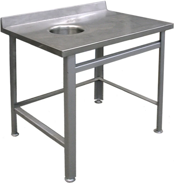 В этой модели отверстие расположено слева, т.е. свободного места достаточно для размещения разделочных досок, инвентаря и посуды. Отходы от продуктов сбрасывают через отверстие в бак или мусорное ведро, установленное под столом.