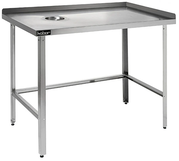 Стол для сбора пищевых отходов КОБОР СРОБ-120/60 П/Л с бортом - широко применяется в различных производственных цехах предприятий общественного питания, супермаркетах, комбинатах пищевой промышленности для разделывания и обработки пищевых продуктов, а также в качестве вспомогательной поверхности для кухонного оборудования.