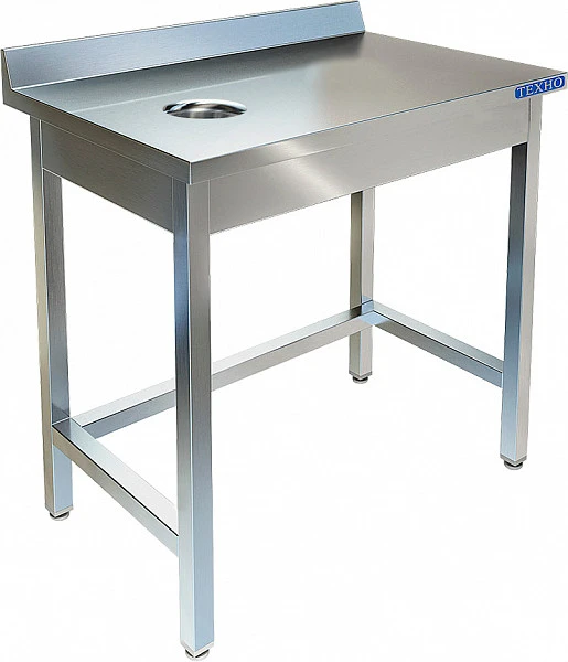 Стол для сбора отходов Техно-Тт СПС-932/907Л используется на предприятиях общественного питания и торговли для сбора пищевых отходов. Стол состоит из столешницы из пищевой нержавеющей стали с отверстием диаметром 180 мм.