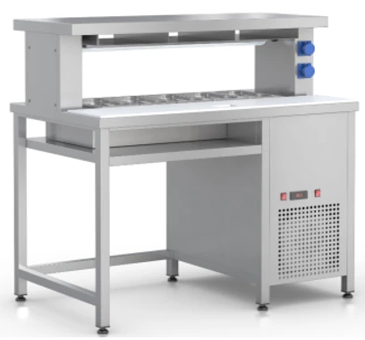 Стол фасовочный RoboLabs СФ-125Т пристенный с охлаждаемой ванной на 5 GN1/3 глубиной 100 мм и тепловой поверхностью.