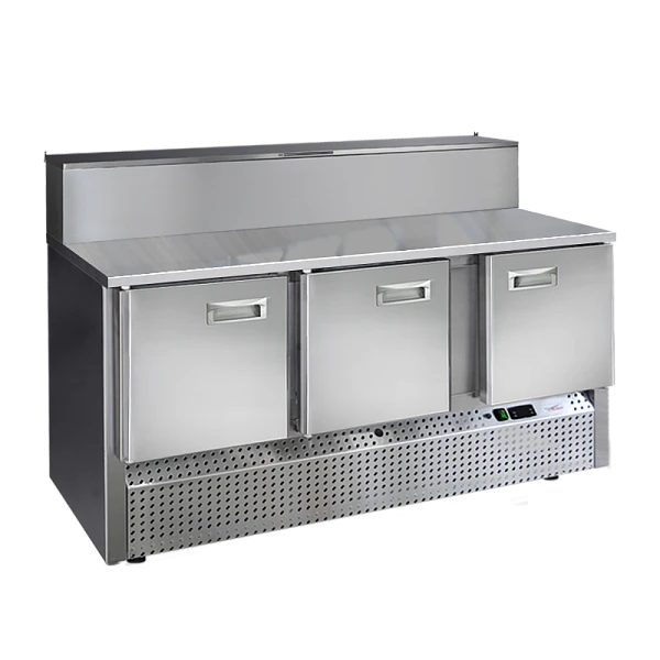 Стол холодильный для пиццы Финист СХСнпц-800-3 предназначен для хранения скоро портящихся полуфабрикатов из мяса, рыбы и других ингредиентов для приготовления пиццы на предприятиях общественного питания и торговли. Модель оснащена расположенным снизу агрегатным отсеком, столешницей с отсеком для гастроемкостей с крышкой, кабелем питания с евровилкой и кнопочной панелью управления с цифровым дисплеем. Корпус выполнен из высококачественной нержавеющей стали.