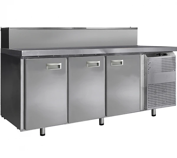 Стол холодильный для пиццы Финист СХСпц-800-3 предназначен для хранения скоро портящихся полуфабрикатов из мяса, рыбы и других ингредиентов для приготовления пиццы на предприятиях общественного питания и торговли. Модель оснащена расположенным сбоку агрегатным отсеком, столешницей с отсеком для гастроемкостей с крышкой, кабелем питания с евровилкой и кнопочной панелью управления с цифровым дисплеем. Корпус выполнен из высококачественной нержавеющей стали.