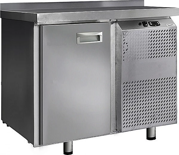 Стол холодильный Финист СХС-600-1 предназначен для хранения предварительно охлажденных мясных и рыбных полуфабрикатов, заготовок для салатов, молочной продукции, охлажденных напитков и других пищевых продуктов на предприятиях общественного питания и торговли. Модель оснащена расположенным сбоку агрегатным отсеком, столешницей с задним бортом, холодильной камерой с распашной дверцей, устойчивыми ножками с подпятниками, кабелем питания с евровилкой и кнопочной панелью управления с цифровым дисплеем. Корпус выполнен из высококачественной нержавеющей стали.