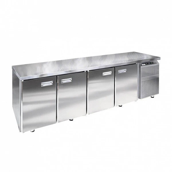 Стол холодильный Финист СХСт-700-4 под тепловое оборудование предназначен в барах, ресторанах, столовых, кафе, магазинах и на пищевых производствах. Имеют высоту ниже стандартной (675 мм). Это позволяет даже при установке теплового оборудования на столешницу сохранить удобную для работы повара высоту в 850-900 мм и не нарушить единую рабочую линию.