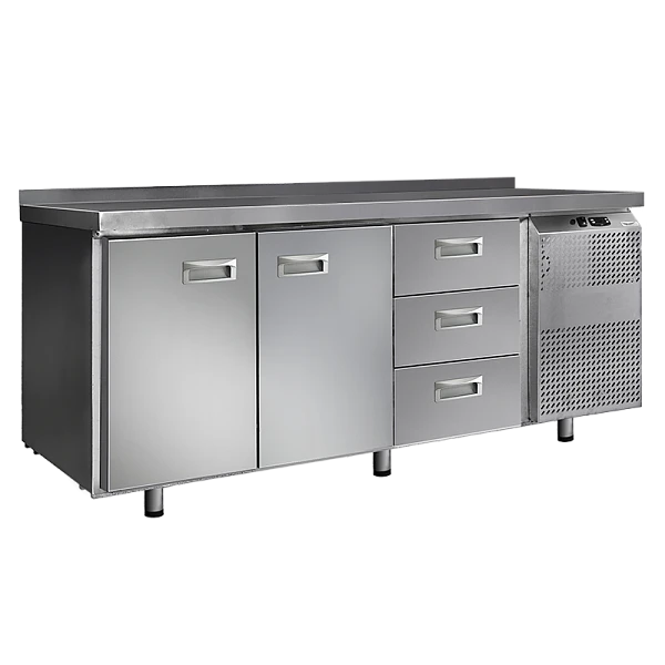 Стол холодильный Finist УХС-600-2/3 предназначен для использования в технологическом процессе на предприятиях общественного питания. Основное назначение – хранение скоропортящихся полуфабрикатов из мяса, рыбы и других продуктов, применяемых для приготовления блюд.