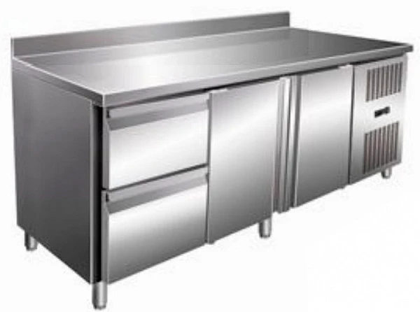 Стол состоит из столешницы, на которой можно раскатывать тесто и обрабатывать ингредиенты для приготовления блюд, и камеры, предназначенной для заморозки и хранения продуктов и напитков.