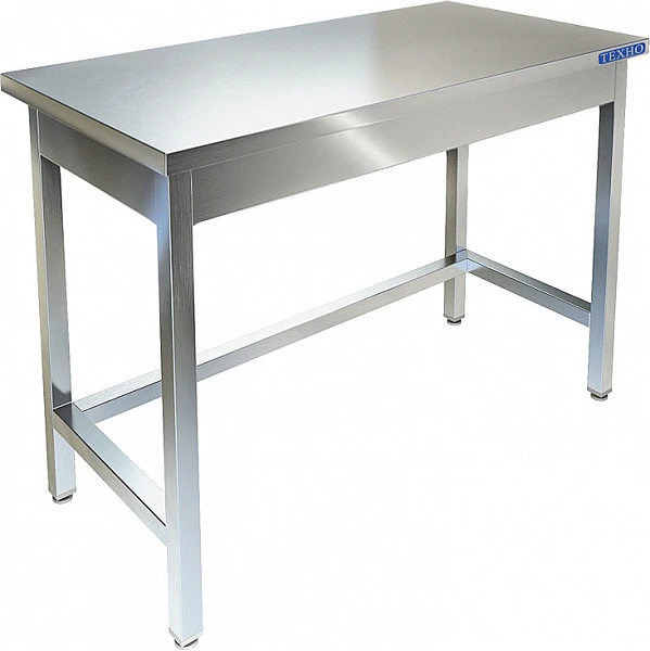 Столешница из нержавеющей стали марки AISI 304 толщиной 0,8мм, ЛДСП толщиной 32мм. Каркас разборный из трубы 40х40 нержавеющей стали марки AISI 304 толщиной 1,2мм. Обвязка из трубы 40х20 нержавеющей стали марки AISI 430 толщиной 1,2мм. Регулируемые опоры.