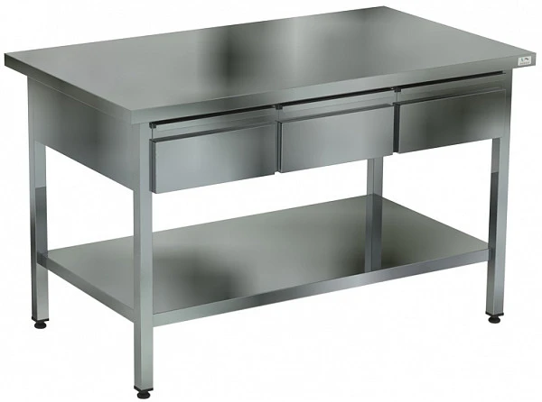 Стол разделочный КОБОР СПЯ-120/60 П с выдвижными ящиками применяется в различных производственных цехах предприятий общественного питания, супермаркетах, комбинатах пищевой промышленности для разделывания и обработки пищевых продуктов, а также в качестве вспомогательной поверхности для кухонного оборудования.