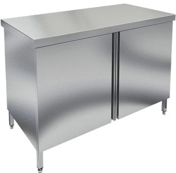Стол-тумба Hessen СТРО 15*6 (нерж) без борта дверки – распашные, используется на предприятиях пищевой промышленности, общественного питания и торговли как для работы с продуктами питания, так и для хранения на нем посуды и кухонного инвентаря.