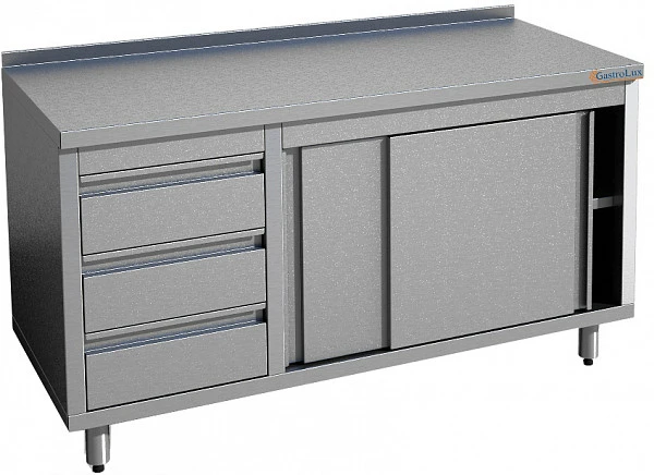 Стол-тумба Gastrolux С-146ЯР/Р серии Premium используется на предприятиях общественного питания и торговли, в пекарнях, кондитерских и производственных помещениях для раскатки теста и обработки ингредиентов для приготовления блюд, а также в качестве дополнительного места для установки кухонных приборов, хранения посуды и продуктов, не требующих специального температурного режима.