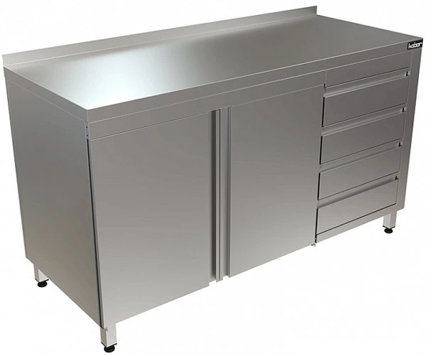 Стол-тумба КОБОР СТБ/1-140/70/Р используется как обычный разделочный стол, а благодаря наличию закрытого объема, его можно использовать для хранения посуды, инвентаря, столовых приборов прочего.