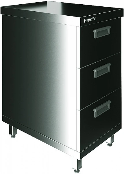 3 выдвижных ящика из нержавеющей стали.