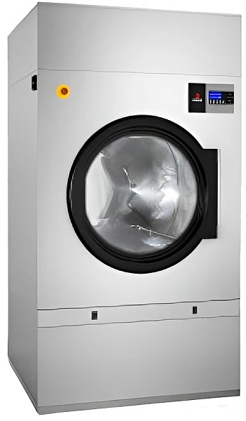 Модель оснащена интуитивно понятной панелью управления Easy Control, позволяющей регулировать время и температуру, кнопкой аварийной остановки и дверцей с широким проемом и двойным остеклением. Реверсивный барабан из нержавеющей стали с штампованной перфорацией для бережной обработки тканей.