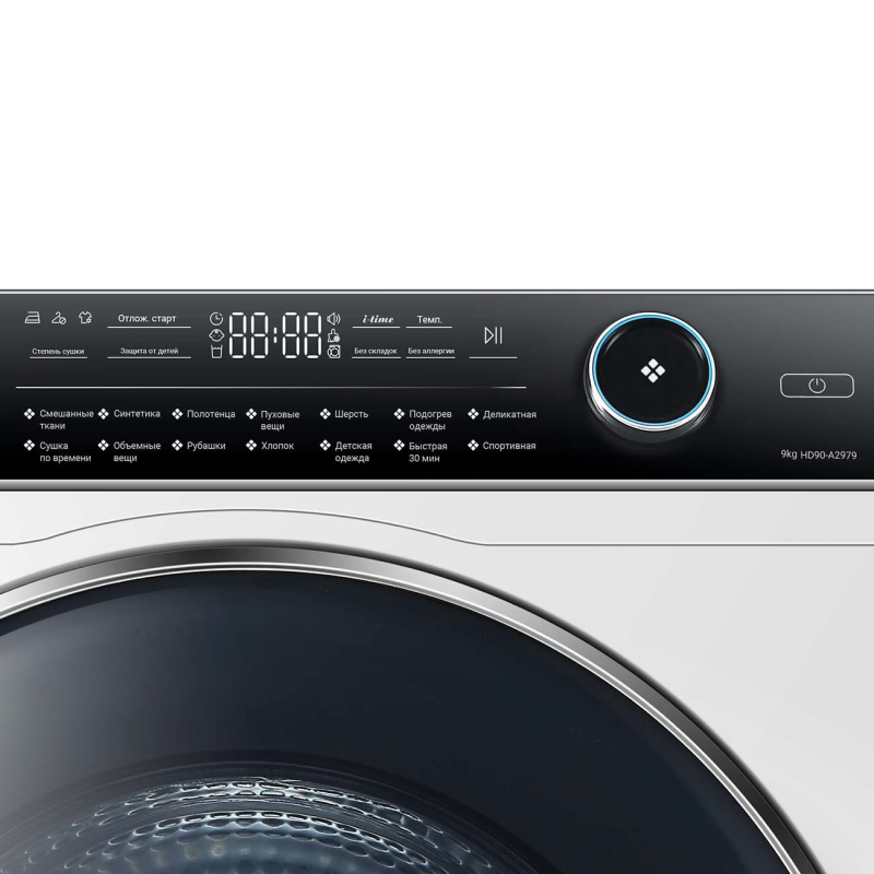 Сушильная машина Haier HD90-A2979 предназначена для домашнего использования, поэтому имеет стандартные габариты и большое разнообразие программ. Так как она устанавливается отдельно, нужно заранее найти достаточно места в помещении. Особенности, на которые нужно обратить внимание при размещении: возможность установки в колонну.