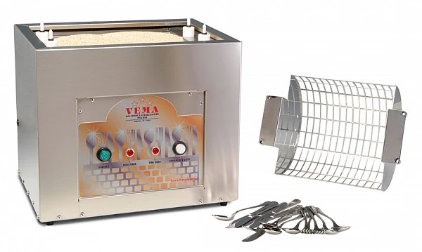 Экономичная сушильно-полировочная машина Vema AP2091/E для столовых приборов используется для быстрого высушивания и полирования влажных столовых приборов (только что вымытых и еще влажных, так как при загрузке в машину столовые приборы обязательно должны быть мокрыми).