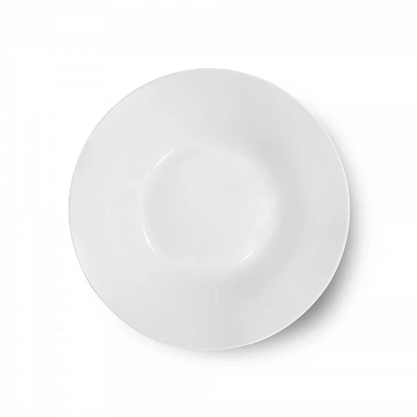Фарфоровая тарелка для первых блюд покрыта белой глазурью. Устойчива к сколам и трещинам. Пригодна для мытья в посудомоечной машине и нагрева в СВЧ-печи. Сочетается с посудой серий Day и Twist.