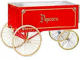 Тележка имеет 4 желтых колеса, желтую надпись «popcorn» на боковой панели.