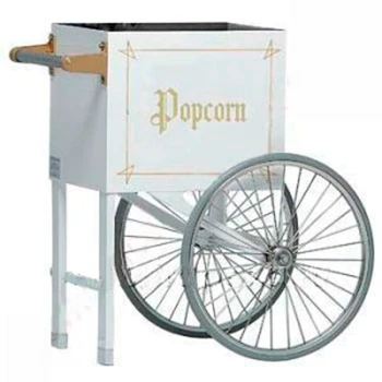 Имеет 2 желтых колеса, 2 белые опоры, 1 ручку для перемещения, желтую надпись «popcorn» на боковой панели.