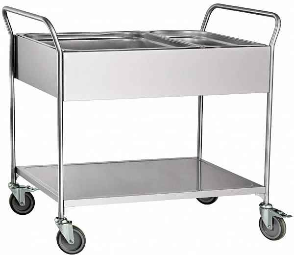 Тележка сервировочная Abat ТС-100 является вспомогательным оборудованием для предприятий общественного питания и используется в качестве межоперационного транспортного средства по сервировке столов.