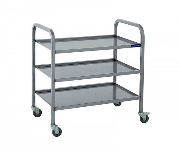 Тележка сервировочная Kayman ТС-13/385-А предназначена для перемещения на предприятиях общественного питания по залу продуктов, готовых блюд, напитков и посуды, а также для подачи грязной посуды из зала в моечное отделение.