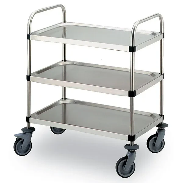 Тележка сервировочная Matfer Bourgeat 778456 используется для транспортировки столовых приборов, тарелок с готовыми блюдами, грязной посуды и т.д. на предприятиях общественного питания.