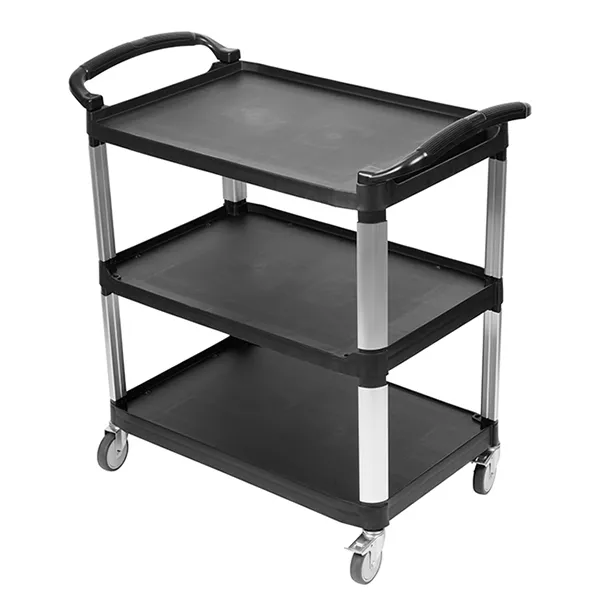 Тележка сервировочная Prohotel JW-SEDO используется для транспортировки столовых приборов, тарелок с готовыми блюдами, грязной посуды и т.д. на предприятиях общественного питания.