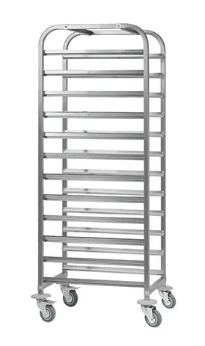 Благодаря гигиеничности материала тележку легко поддерживать в чистоте. Оптимальная высота и количество уровней позволяют эффективно использовать пространство помещений. А поворотные колеса и наличие двух тормозов делают перемещение по кухне удобным.