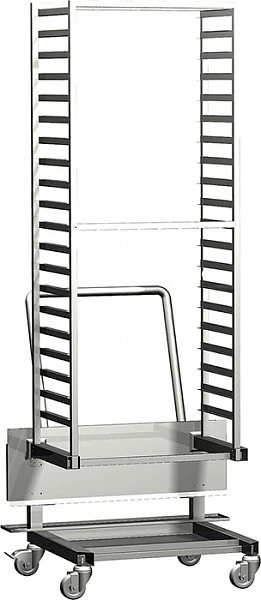 Тележка вкатная Unox XEBTC-16EU используется совместно с пароконвектоматами серий BakerTop MIND.Maps и расстоечными шкафами на предприятиях общественного питания и торговли, в пекарнях и кондитерских для удобного перемещения листов для выпечки и гастроемкостей.