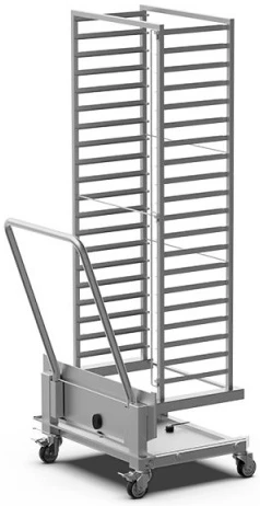 Тележка вкатная Unox XEBTL-16EU используется совместно с печами серий BakerTop MIND.Maps и расстоечными шкафами на предприятиях общественного питания и торговли, в пекарнях и кондитерских для удобного перемещения листов для выпечки и гастроемкостей.