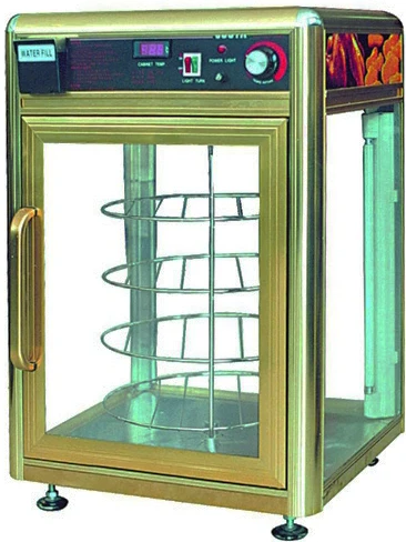 Благодаря уникальному дизайну, встроенной подсветке и удобной конструкции с 4 вращающимися круглыми решётками для противней модель привлекает внимание покупателей и предоставляет им полный обзор продукции. Корпус изготовлен из алюминия.