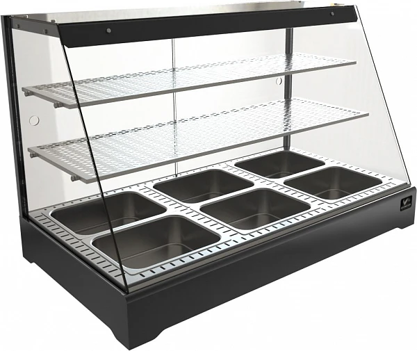 Тепловая витрина Кобор СR2-117H Black серии Standart предназначена для сохранения готовых продуктов питания в подогретом состоянии и демонстрации их покупателям.