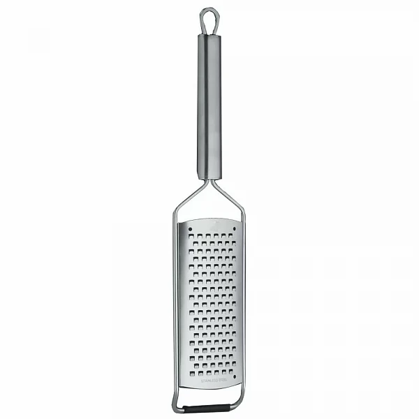 Терка Luxstahl 32х6,5 см предназначена для измельчения и натирания твердых сыров, фруктов и овощей, чеснока, имбиря на предприятиях общественного питания и в домашних условиях.