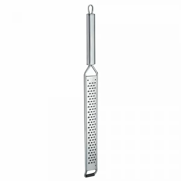 Терка Luxstahl 40х3,5 см предназначена для измельчения и натирания твердых сыров, фруктов и овощей, чеснока, имбиря на предприятиях общественного питания и в домашних условиях.