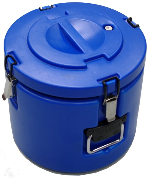 Термоконтейнер цилиндрический Kocateq CN8 с верхней загрузкой объемом 30 л из цельнолитой двухслойной конструкции из пищевого полиэтилена толщиной 3 мм с инжекцией пенополиуретана высокой плотности.