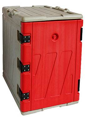 Термоконтейнер с фронтальной загрузкой объемом 100 л из цельнолитой двухслойной конструкции из пищевого полиэтилена толщиной 3 мм с инжекцией пенополиуретана высокой плотности.