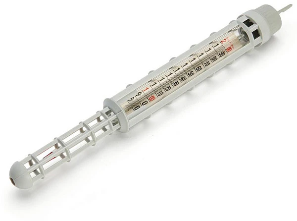 Практичный, его можно полностью погрузить. Термометр защищен от ударов нейлоновым чехлом.