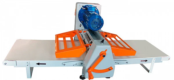 Конструкция машины типична для технологического оборудования данного класса: два реверсивных транспортера, между которыми установлены раскатывающие валки с регулируемым зазором. Величина зазора между валками устанавливается от 1 до 30 мм, ширина пласта раскатываемого теста до 500 мм, производительность не менее 80 кг/час.