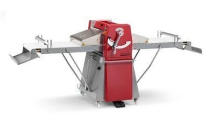 Оборудование позволяет регулировать толщину раскатки теста с помощью ручной рычажной системы до 50 мм.