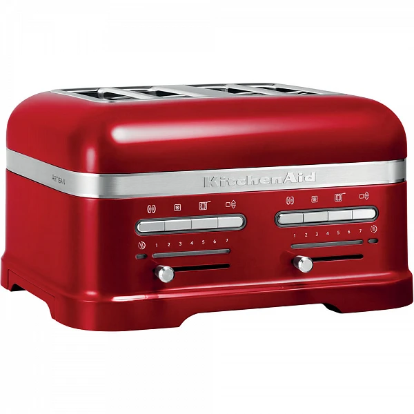 С помощью тостера KitchenAid можно приготовить вкусные тосты и бутерброды. Автоматический датчик тостера обеспечивает автоматическое опускание и поднятие тостов, в соответствии с семью степенями поджарки, которые регулируются с помощью светодиодного таймера. Кроме того, если вам необходимо куда-нибудь отлучиться, тостер Artisan будет поддерживать ваш тост теплым. В комплект входит специальная решетка для приготовления вкусных, равномерно поджаренных сэндвичей. Она также идеально подойдет для подогрева булочек и размораживания хлеба. Кроме того, версия с 4 отделениями для хлеба имеет 2 независимые пары отверстий для приготовления 2 или 4 тостов одновременно.