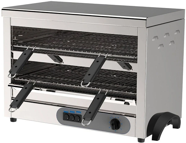 Тостер профессиональный Fiamma Tosti MTS2.11 используется для приготовления и разогрева тостов, бутербродов, гамбургеров и других простых блюд на предприятиях общественного питания и торговли.