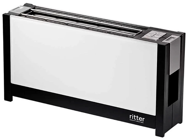 Тостер Ritter Merido5 630045 позволяет приготовить за один раз сразу два стандартных ломтика хлеба для самых сытных сэндвичей. Его ширина около 9 см, а дизайн со стеклянной панелью несомненно привлечёт внимание на любой кухне.
